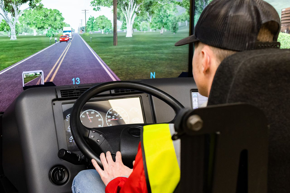 Practicing skills with our state-of-the-art simulator allows students to build confidence while learning how to control the vehicle and learn the shifting pattern. The simulator replicates different scenarios, such as traffic issues, high wind, snow, and rain. This is as real life as it gets!